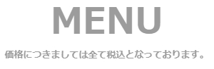 ※ メニュー料金につきましては、全て税込価格となっております。